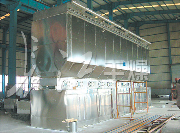 洁净的热风经阀板分配进入床体内,从加料器进入的湿物料被热风形成沸腾状态。由于热风与物料广泛接触,增强了传热传质的过程,因此在较短时间内就可干燥。如用连续型,物料从床体的一头进入,经过几十秒至几分钟沸腾干燥,自动从床体另一头流出。本设备一般进行负压操作。