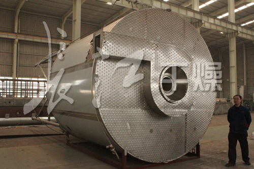 1、 塔径塔高做了相应的调整,既保证物料干燥之前接触不到塔壁,又保证物料在热风中的停留时间;塔壁设有夹套冷风冷却装置,确保物料吸附在塔壁上因局部温度过高而产生软化、熔融甚至焦化现象;锥角增大,锥体上安装空气震击器,用压缩空气脉冲式地震击筒体,把吸附在筒体上的粉料顺畅地击落下来;