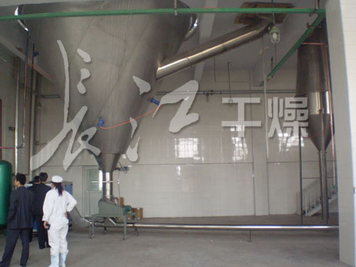 中药浸膏是由植物根茎叶提取而成,特别是醇提工艺,它含糖份较高,在高温下易软化熔融,普通的离心喷雾已无法满足干燥,针对这种情况我公司组织了一批精干的技术力量,总结出本厂设计制造喷雾干燥机的成功经验,收集了国内外同行业同类型产品的优点,经过精密、反复的工艺计算和无数次的实验,开发出了中药专用喷雾干燥机组,并推广到了一些知名药厂使用。
