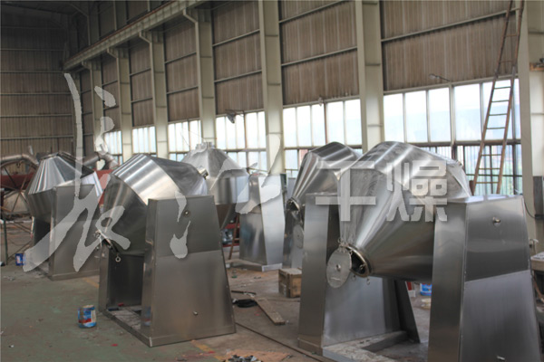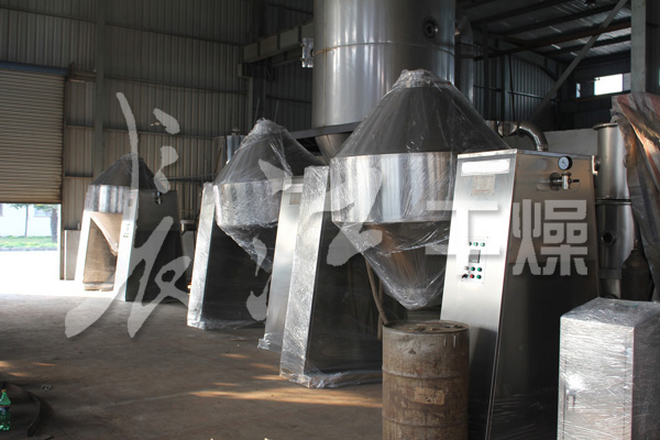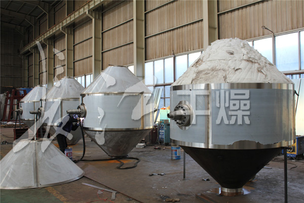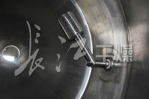 在动力驱动下,罐体作缓慢旋转,罐内物料不断地混合,从而达到强化干燥的目的。