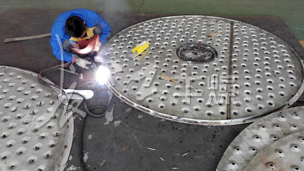 湿物料自加料器连续地加到干燥器上部第一层干燥盘上,带有耙叶的耙臂作回转运动使耙臂作回转运动使耙叶连续地翻抄物料。物料沿指数螺旋线流过干燥盘表面,在小干燥盘上的物料被移送到外缘,并在外缘落到下方的大干燥盘外缘,在大干盘上物料向里移动并从中间落料口落如下一层小干燥盘中。大小干燥盘上下交替排列,物料得以连续地流过整个干燥器。中空的干燥盘内通入加热介质,加热介质形式有饱和蒸汽、热水、导热油和高温熔盐,加热介质由干燥盘的一端进入,从另一端导出。已干物料从^后一层干燥盘落到壳体的底层,^后被耙叶移送到出料口排出。湿份从物料中溢出,由设在顶盖上的排湿口排出,真空型盘式干燥器的湿气由设在顶盖上的真空泵口排出。从底层排出的干物料可直接包装。通过配加翅片加热器、溶剂回收冷凝器、袋式除尘器、干料返混机构、引风机等辅机,可提高其干燥的生产能力,干燥膏糊状和热敏性物料,可方便地回收溶剂,并能进行热解和反应操作。