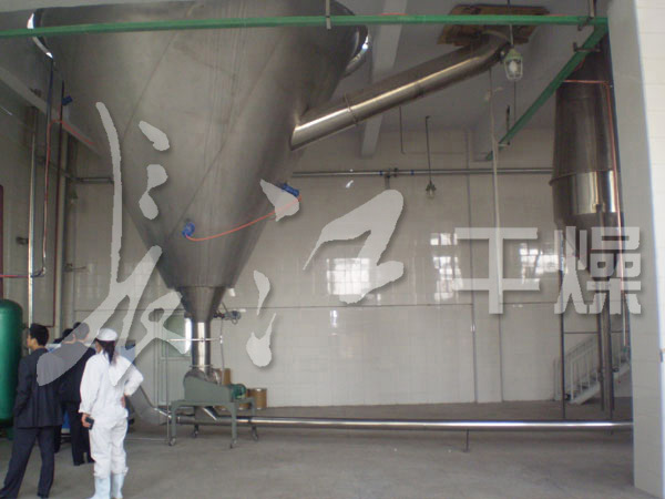 酶制剂专业干燥工程曾由国内酶制剂领域权威^与我司销售人员共同进行多次工艺试验,利用LPG-5型高速离心喷雾干燥机(每小时蒸发5公斤水)作为试验装备,对进出风温度、风量风压匹配、超温临界报警、进出料平衡等都做了多次论证,更好地指导了大型喷雾干燥设备的工艺设计。针对酶制剂吸湿性强等特性做了设备结构改进,融入了防粘扫壁的新技术,并能实现同步冷却和连续收料等工艺需求。